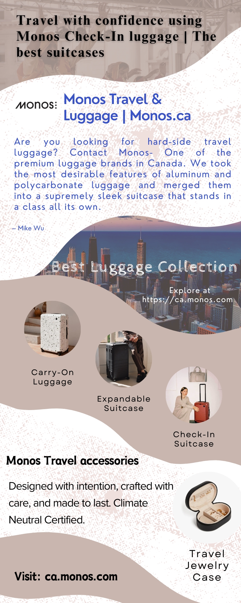 Are you going on Off-Road trip with your friends? Are you looking for hard & dent-resistant Luggage? Buy Monos Luggage- The perfect choice according to your needs. We have branded luggage Outfitted with a high-quality polycarbonate shell. Our practical features include built-in compression pads, TSA-approved locks, and organized compartments that make our luggage more secure. Buy now!